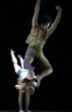 “The program's major piece, "Black Madrigal," was, in fact, set to the phase-shifting music of Mauricio Kagel, who studied with Stockhausen. The polyphonic structure of the traditional form of the madrigal could be heard in the spoken and sung text of the music, the lyrics of which consist entirely of multiple uses of the names of African towns, accompanied by instrumental sounds that have similar organizations. Instead of the dance being a direct mimicking of the emotional and rhythmic patterns of the music, its primary relationship to the score was through visually interpreted polyphonism, or movement patterns that are like phase-shifted fraternal sextuplets instead of the unison of genetically identical siblings. Like the music of Stockhausen, or American composer Terry Riley's landmark "In C," which states a brief set of musical material, then invents on it through pattern-shifting that creates endless, imaginative complexity.”